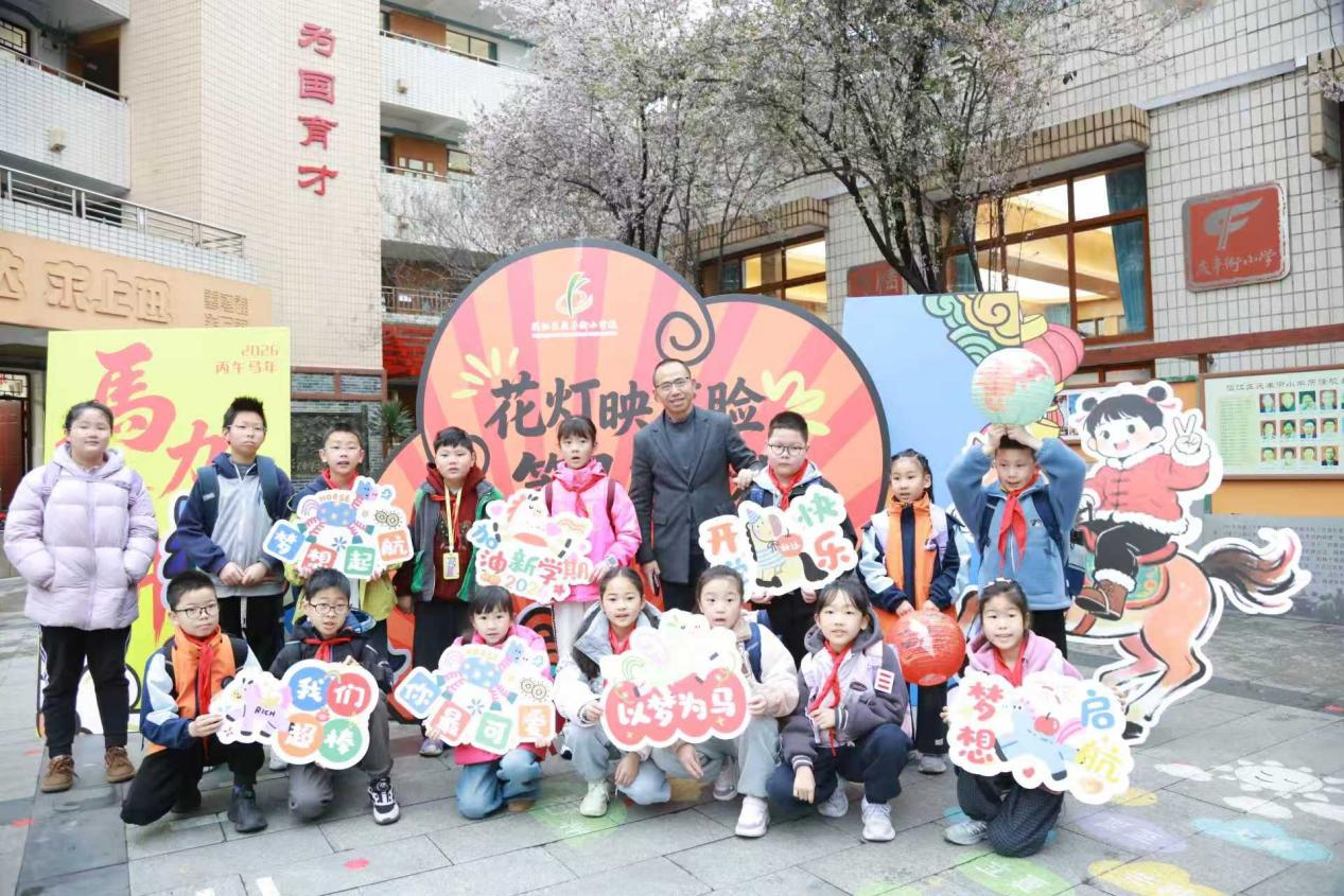 2026年新学期开学恰逢元宵佳节,温江庆丰街小学校围绕“花灯映笑脸,策马启新程”开展春季开学主题活动,将元宵传统文化元素与新学期励志教育相结合,面向全体学生开展文化教育与成长引导,助力学生树立目标,开启马年新学期学习生活。