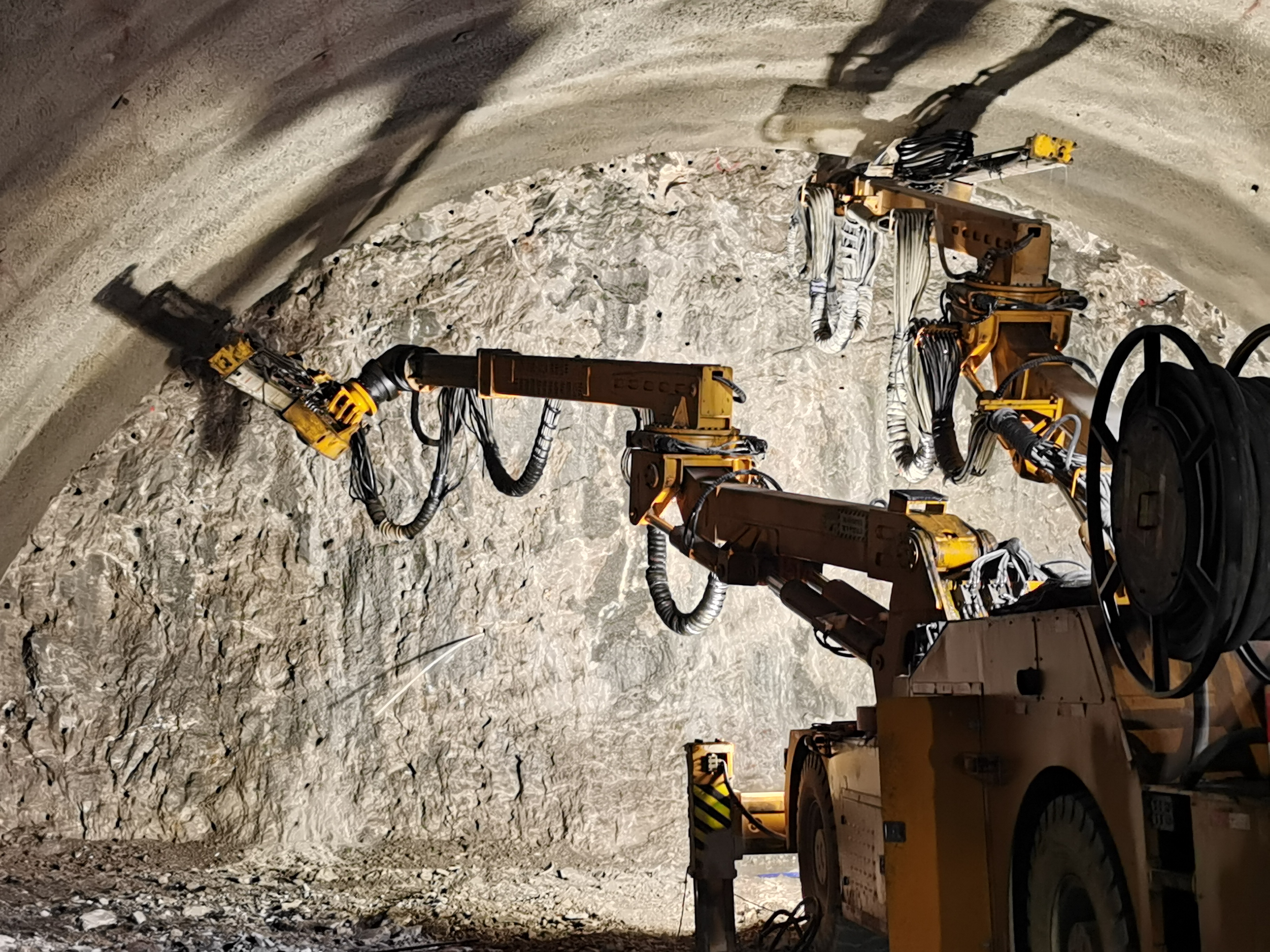 自2024年4月正式进洞施工以来,项目团队采用双曲臂凿岩台车、三臂拱架台车、液压仰拱栈桥等设备配置,提升隧道的施工效率;针对低瓦斯隧道通风问题,项目采用风量倍增器,运用新型巷道式通风技术,降低特长隧道漏风率,通过自动监控系统,实时检测瓦斯浓度,创新可移动式逃生管道,有效降低人员安全风险。